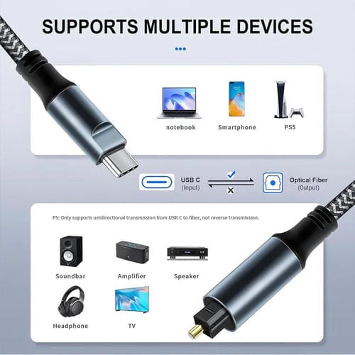 3. Amplia compatibilidad: Conecta sin problemas dispositivos USB-C (smartphones, tablets, portátiles y consolas de videojuegos) a sistemas de audio óptico (amplificadores, altavoces, barras de sonido o amplificadores de auriculares con entradas ópticas) para una transferencia de datos de alta velocidad sin pérdidas.