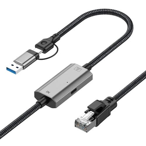 El Cable Ethernet 2 en 1 RJ45 a USB Tipo C de 2 metros es un accesorio de red de alta velocidad diseñado para ampliar o reemplazar la conectividad Ethernet en Computadoras Portátiles y de escritorio. Compatible con sistemas operativos Windows y Mac OS, este Cable plug and play permite una Conexión rápida y estable sin necesidad de abrir el equipo o instalar controladores Adicionales. Su función principal es proporcionar una interfaz de red externa mediante Puertos USB Tipo C o USB estándar, soportando velocidades de hasta 2.5 Gbps, ideal para entornos domésticos, empresariales y aplicaciones de Juegos en red. Además, incorpora Soporte para funciones avanzadas como Jumbo Frames, etiquetado VLAN y Wake-on-LAN (WOL), asegurando una solución multifuncional y eficiente para usuarios que requieren una Conexión Ethernet confiable y Portátil.