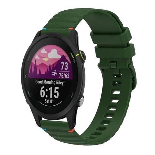 Correa de Silicona para Reloj Garmin Forerunner 255 Music con Costuras Onduladas y Puntos 22mm (Verde Militar)