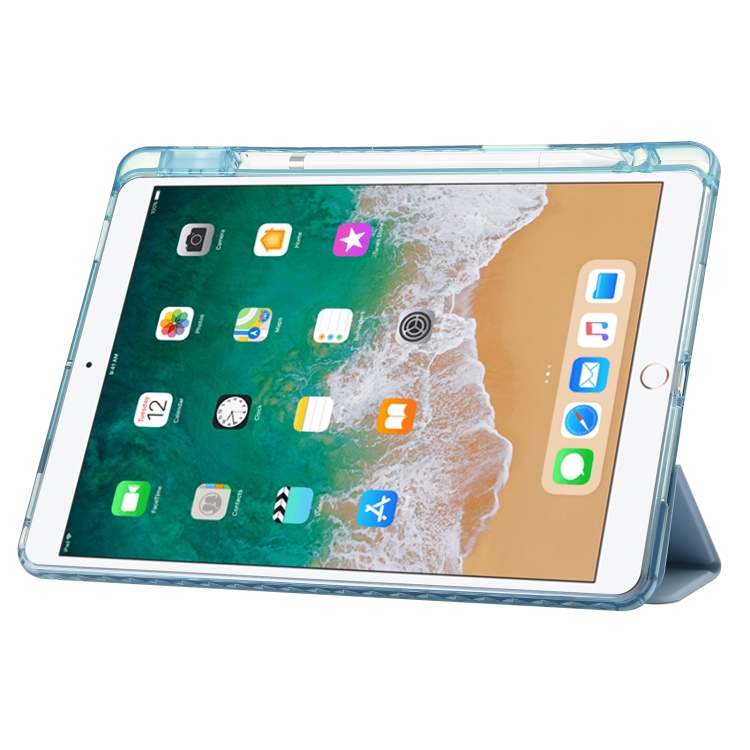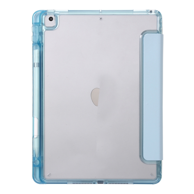 Estuche de Tableta Cuero Acrílico Transparente 3 Pliegues para iPad 10.2 (2019, 2020, 2021) Pro 10.5 (2017) Air 10.5 (2019) (Azul Hielo)