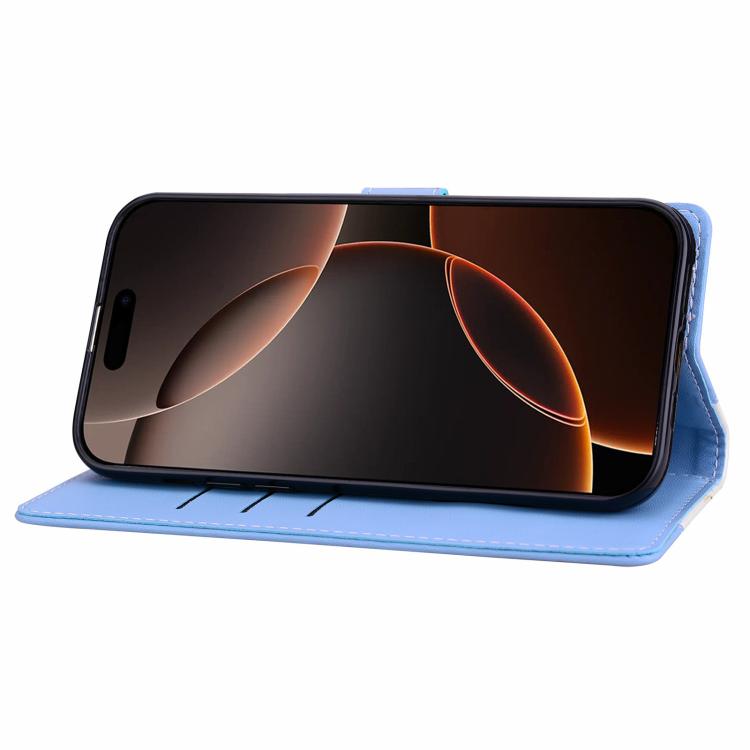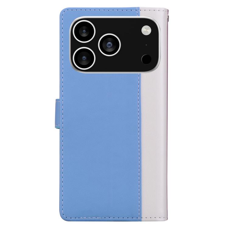 Funda de cuero bicolor con relieve para iPhone 17 Pro (blanco y azul)