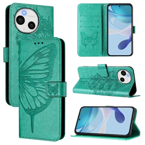 Funda de Cuero para Sharp Aquos Sense9 con Diseño de Mariposa En Relieve (Verde)