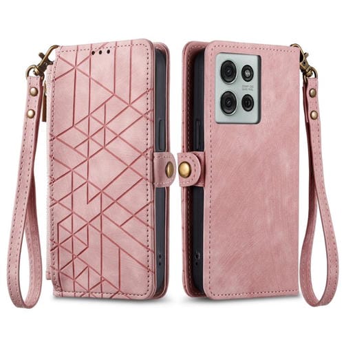 Funda de Cuero con Hebilla Lateral y Cremallera para Motorola Moto G75 5G (Rosa)