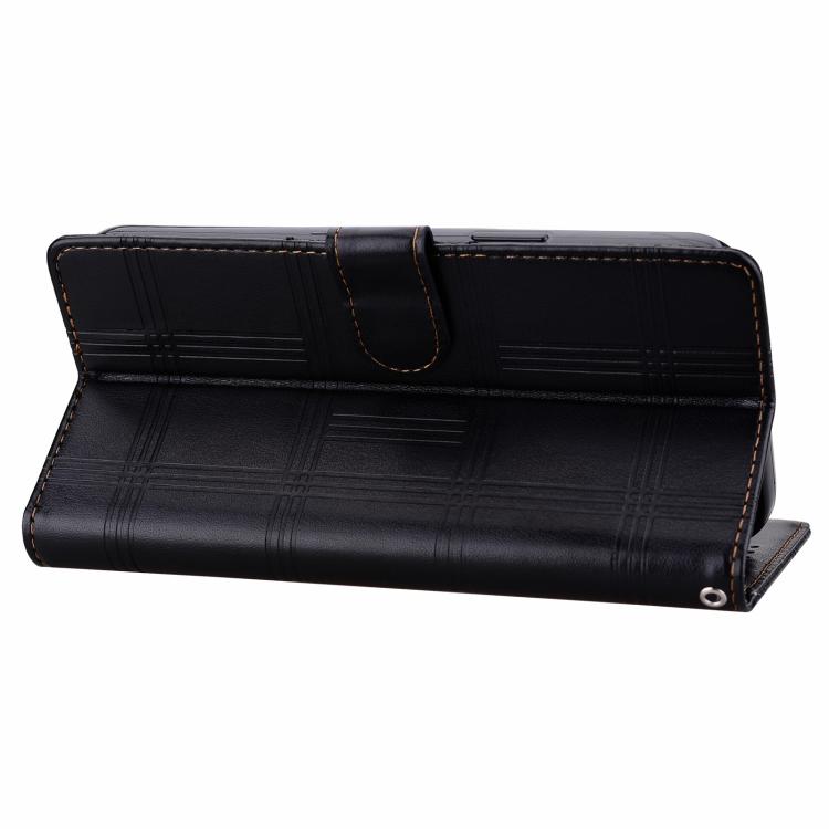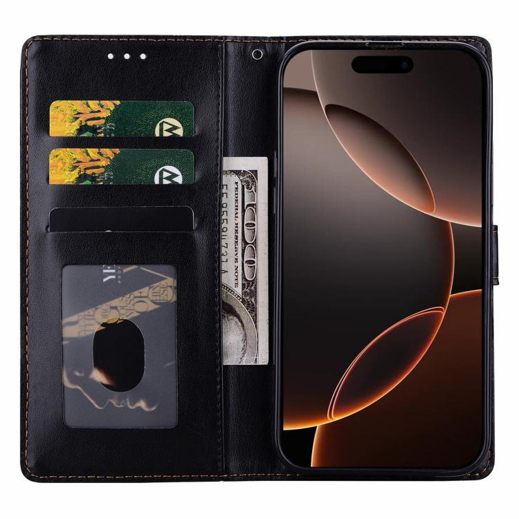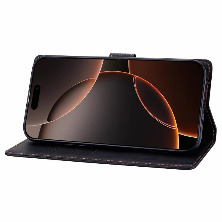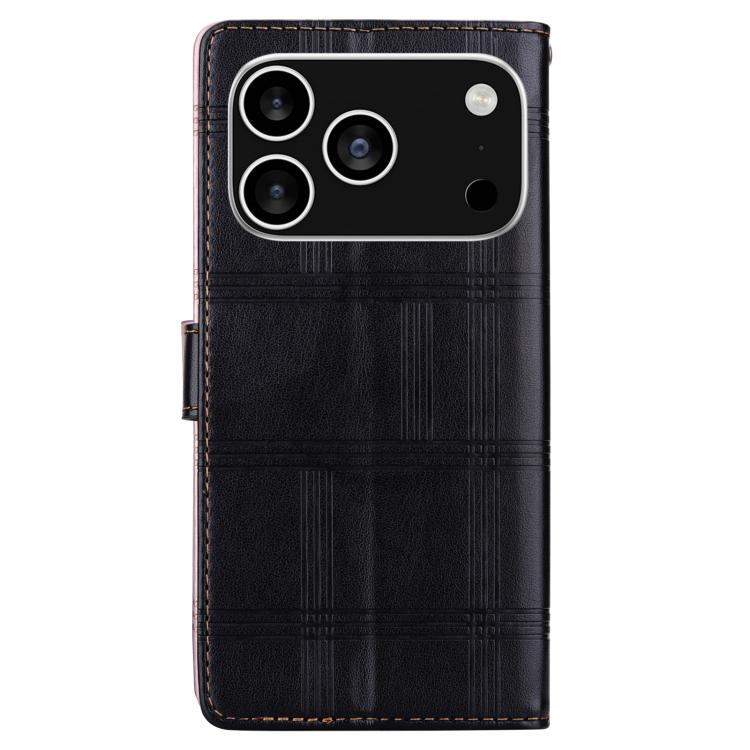 Funda de cuero con relieve a cuadros para iPhone 17 Pro (negra)