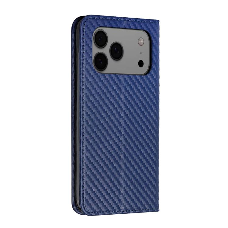 Funda de cuero con tapa magnética y textura de fibra de carbono para iPhone 17 Pro (azul)