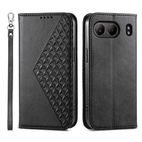 Funda de Cuero Magnética para OnePlus Nord 4 5G con Textura de Piel de Becerro y Cuadrícula Cúbica (Negro)