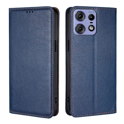 Funda de Cuero Magnética para Motorola Edge 50 Pro 5G (Azul) con Aceite Brillante