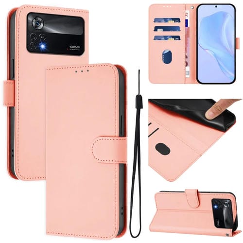 Funda de Piel Sintética con Cordón para Xiaomi Poco X4 Pro 5G (Rosa)