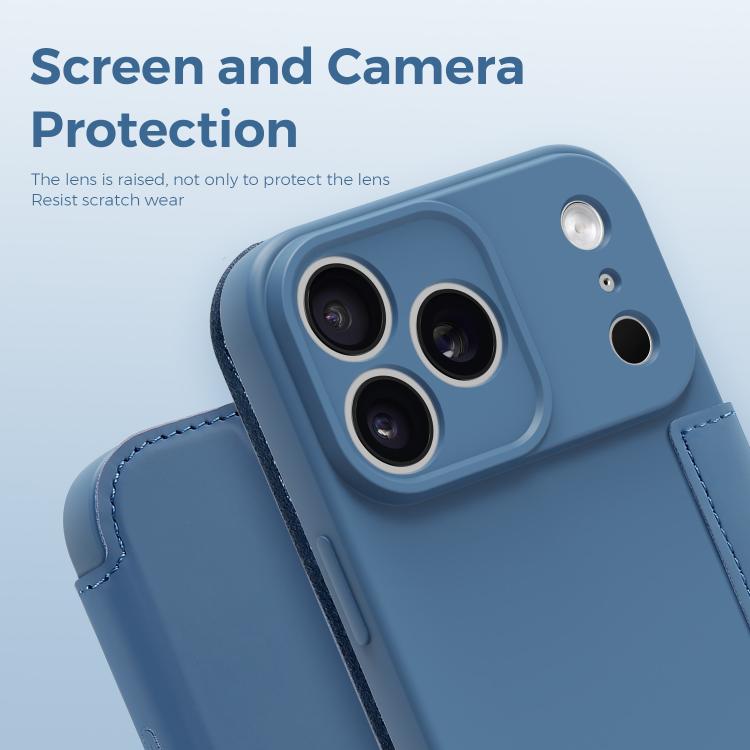 Funda de piel sintética con tacto similar a la piel líquida para iPhone 17 Pro Max con ranuras para tarjetas (Roja)