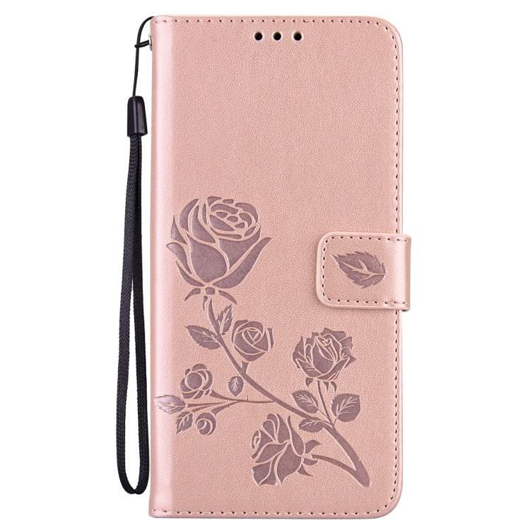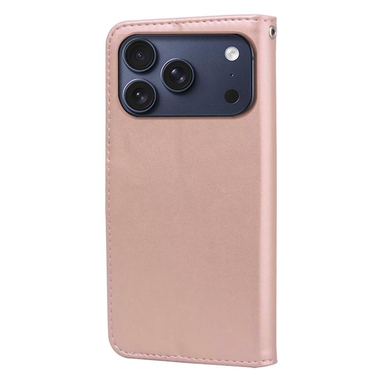 Funda de piel sintética con tapa y relieve rosa para iPhone 17 Pro (oro rosa)
