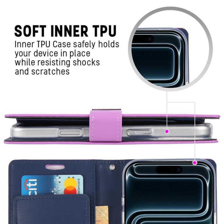 Funda de piel texturizada Crazy Horse GOOSPERY RICH DIARY para iPhone 17 Pro (morada)