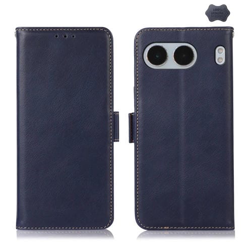 Funda de Teléfono OnePlus Nord 4 Cuero Genuino Crazy Horse Rfid Cierre Magnético (Azul)