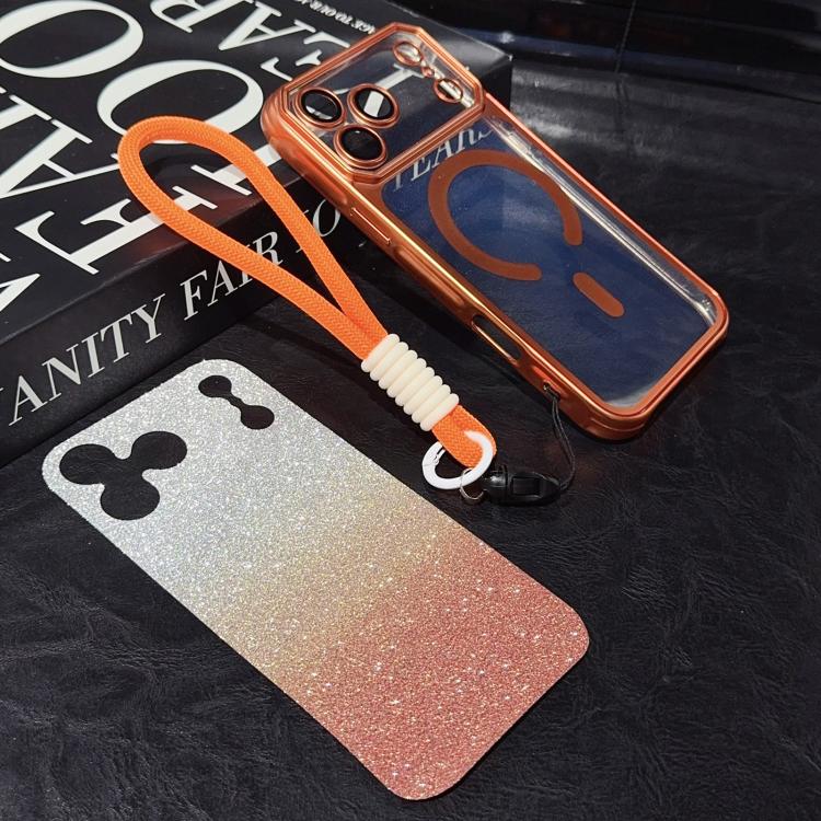 Funda de TPU MagSafe con ventana grande, brillo degradado, mate, galvanizada, con correa de mano para iPhone 17 Pro Max (rosa)