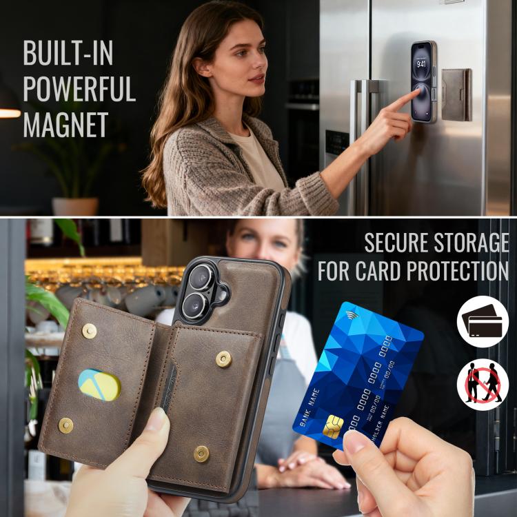 Funda desmontable para iPhone 17 MAGKING K4 Series MagSafe RFID con tarjetero plegable (Café)
