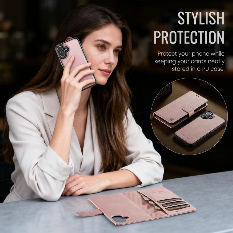 Funda magnética MagSafe AutSpace A05 2 en 1 con textura de piel de becerro retro para iPhone 17 (rosa)