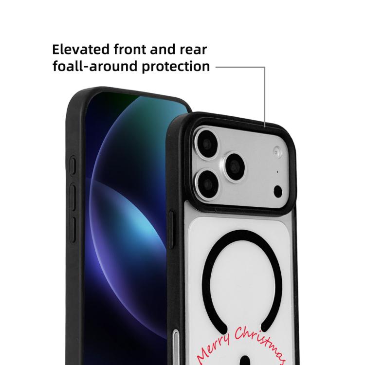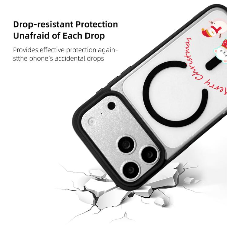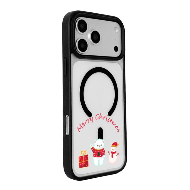 Funda magnética resistente con borde negro pintado de la serie navideña para iPhone 17 Pro (Oso polar y muñeco de nieve)