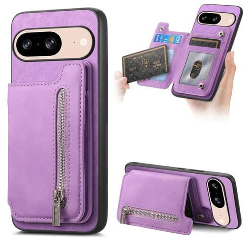 Funda para Teléfono Google Pixel 8 con Cremallera Magsafe, Tarjetero y Cartera (Morado)
