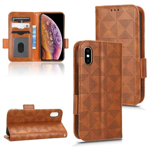 Funda para Teléfono Cuero iPhone Xs Max Triángulo Simétrico (Marrón)