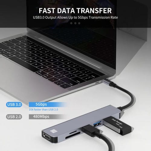 - 1x Adaptador Junsunmay 6 en 1 Tipo-C a 4K Estación de Acoplamiento HDMI USB-C Hub Lector de Tarjetas SD/TF