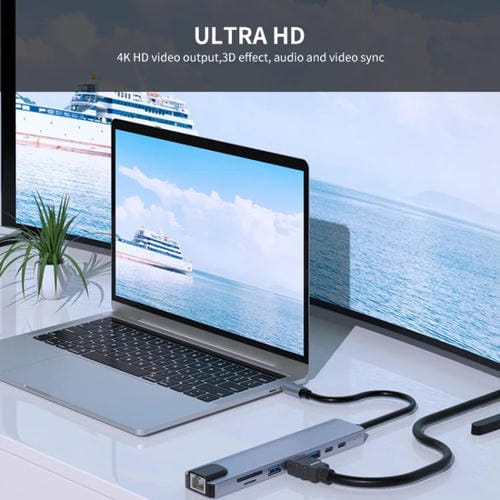 El Adaptador Junsunmay 8 en 1 Tipo-C a 4K HDMI es una estación de acoplamiento multifuncional diseñada para ampliar la conectividad de dispositivos con Puerto USB Tipo-C. Compatible con laptops, tablets y smartphones que soportan protocolo PD y salida de video, este hub permite conectar múltiples periféricos simultáneamente. Su función principal es proporcionar Puertos Adicionales como Ethernet RJ-45, USB 3.0 y 2.0, Lector de Tarjetas SD y TF, salida HDMI 4K para video de alta definición, y Carga rápida mediante PD hasta 87 W, facilitando la transferencia de datos, Conexión a redes Cableadas y proyección de imágenes con calidad UHD.