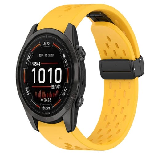 Correa de Reloj de Silicona para Garmin Epix Pro 42mm 20mm con Orificio y Hebilla Plegable (Amarillo)