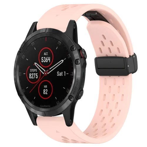 Correa de Silicona para Garmin Fenix 5 Plus con Orificio y Hebilla Plegable de 22mm (Rosa)