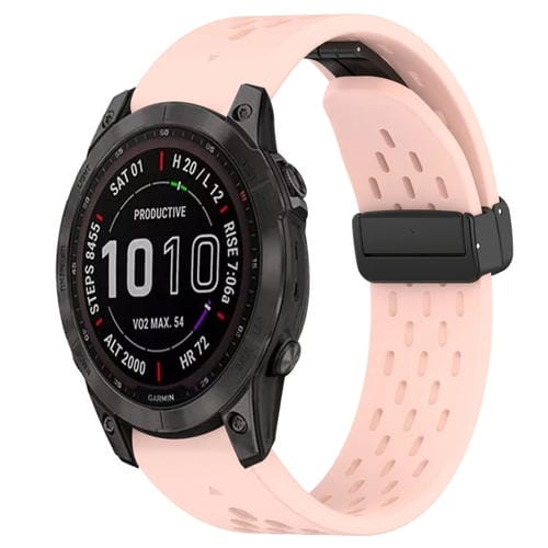 Correa de Silicona para Garmin Fenix 7S Sapphire Solar con Orificio y Hebilla Plegable 20mm (Rosa)