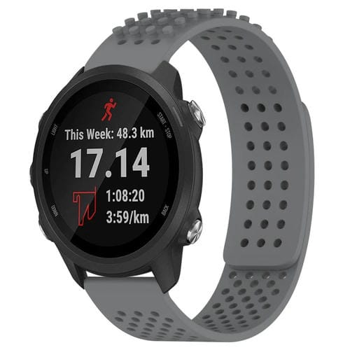 Correa de Reloj de Silicona para Garmin Forerunner 245 Music con Puntos 3D Transpirables y Orificios 20mm (Gris)