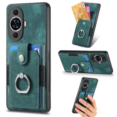 Funda para Huawei Nova 11 con Billetera, Tarjeta y Anillo, Sensación de Piel Retro (Verde)
