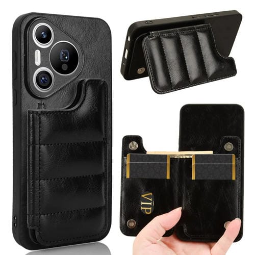 Funda para Huawei Pura 70 con Bolsa para Tarjetas y Patrón de Vaca (Negro)