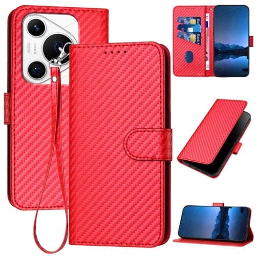 Funda de Cuero para Huawei Pura 70 Pro / Pura 70 Ultra Yx0070 con Hebilla de Fibra de Carbono y Cordón (Rojo)