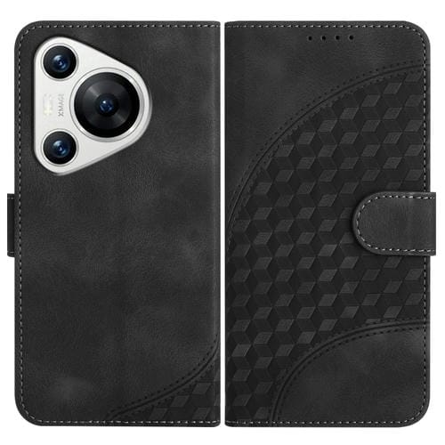 Funda de Cuero para Huawei Pura 70 Yx0060 con Relieve y Cabeza de Elefante con Cordón (Negro)