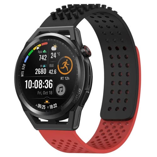 Correa de Silicona para Huawei Watch GT Runner 22mm con Puntos 3D y Orificios (Negro + Rojo)