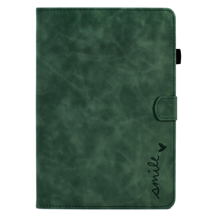 Estuche inteligente de cuero para iPad 10.2 y Air 10.5 2019 con tapa y sonrisa en relieve (Verde)