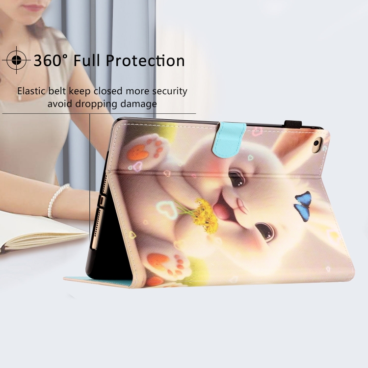 Estuche de Tableta Cuero Inteligente para iPad Mini 5/4/3/2/1 con Costura y Dibujo a Color (Conejo)