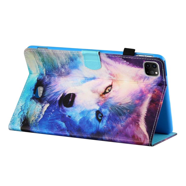 Funda Cuero Inteligente iPad Pro 11 (2024) Dibujo a Color Costuras (Lobo)