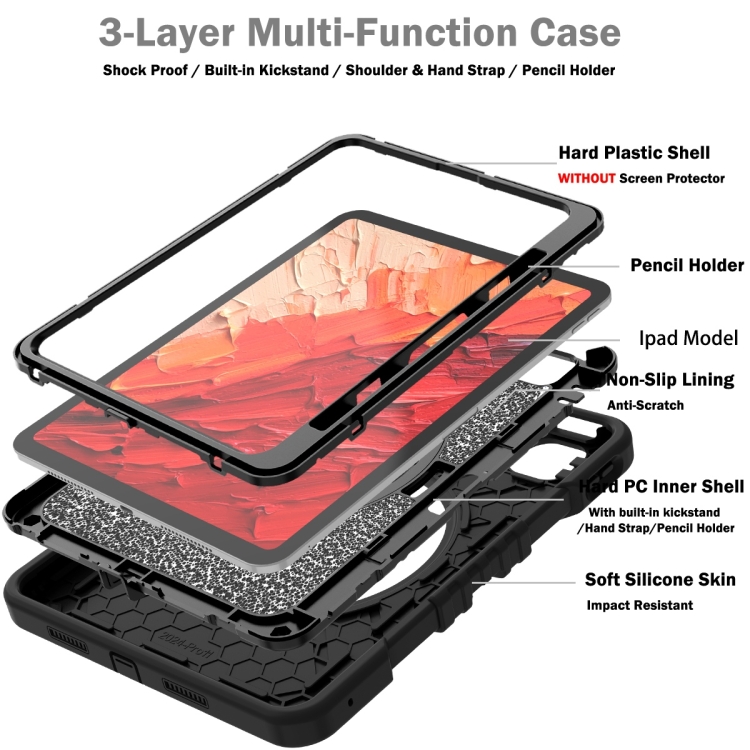 Funda híbrida Silicona para iPad Pro 11 (2024) X Rotation PC con Correa (Negro)