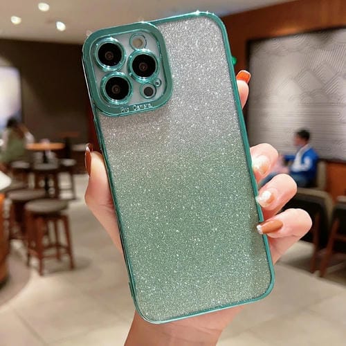 Funda para iPhone 11 Pro Max TPU High Transparent Gradient Color Glitter (Verde Claro)
