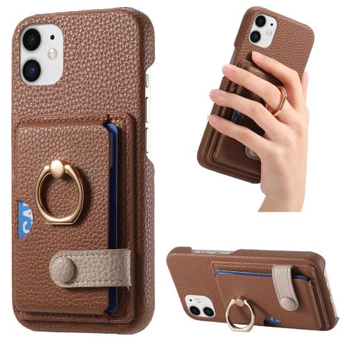 Funda para Teléfono iPhone 12 Mini Borde de Aceite de Cuero Litchi con Anillo y Tarjeta (Marrón)