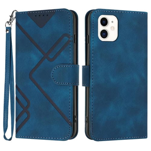 Funda para iPhone 12 Mini Line Pattern Skin Feel Leather Phone Case (Royal Blue)