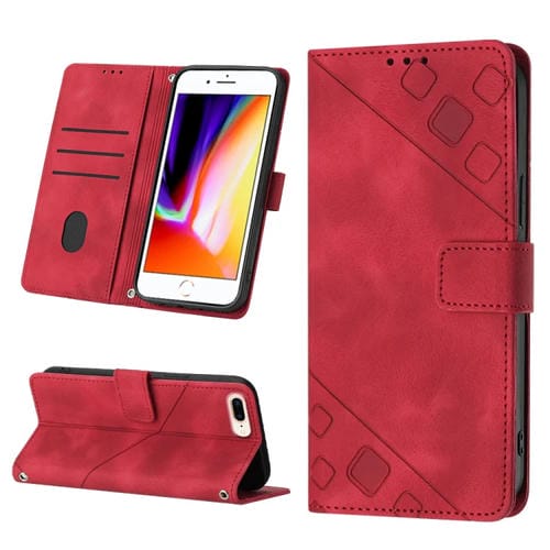 Estuche para Teléfono iPhone 7 Plus 8 Plus 6 Plus Cuero En Relieve con Tacto de Piel (Rojo)