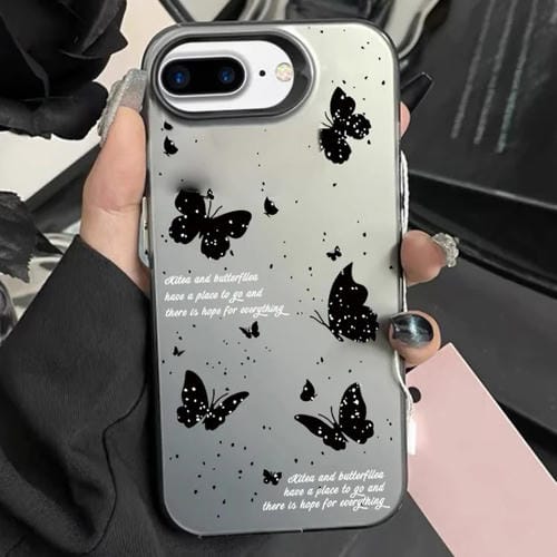 Funda híbrida para iPhone 7 Plus/8 Plus TPU para PC con Pintura Plateada (Mariposa de Tinta Negra)