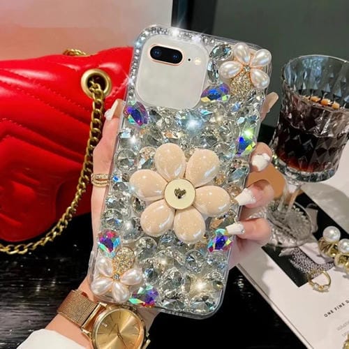Funda para Teléfono iPhone 7 Plus 8 Plus Forma de Girasol con Diamante Colocada a Mano (Blanco)