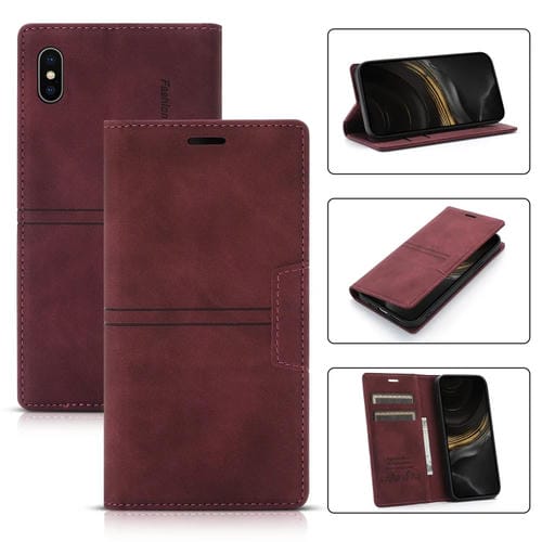 Funda para iPhone X Xs Dream Magnetic Suction Cuero de Pu Tapa Horizontal Soporte Ranura para Tarjeta y Billetera (Rojo Vino)