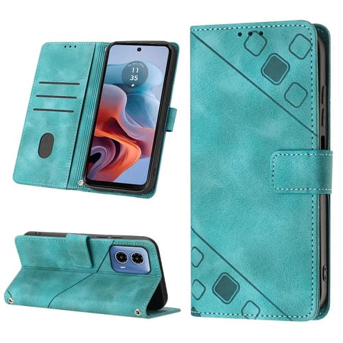Funda de Cuero para Motorola Moto G34 con Relieve y Sensación de Piel (Verde)