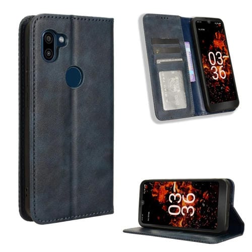 Funda para Orbic Fun + 4G Cuero Textura Retro Hebilla Magnética (Azul)