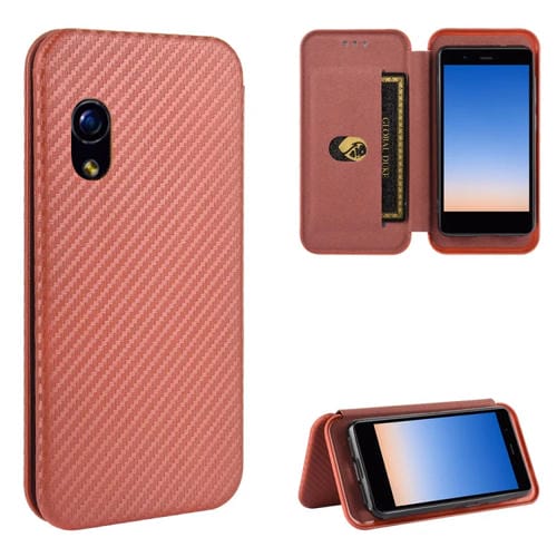 Funda para Rakuten Mini Cuero con Tapa Magnética Horizontal Textura Fibra de Carbono TPU + PC + PU con Ranura para Tarjeta (Marrón)