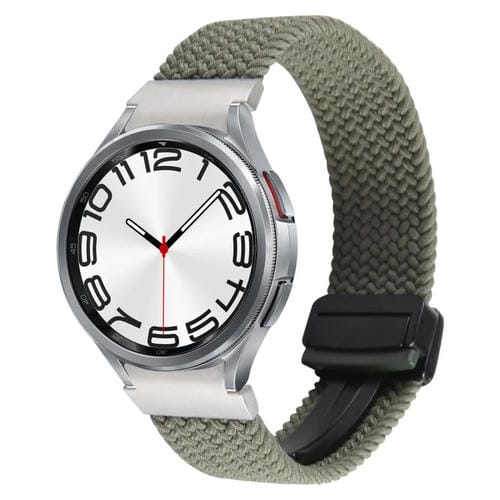 Correa de Reloj Tejida de Nailon para Samsung Galaxy Watch 6/5/4 con Hebilla Plegable Magnética (Verde)
