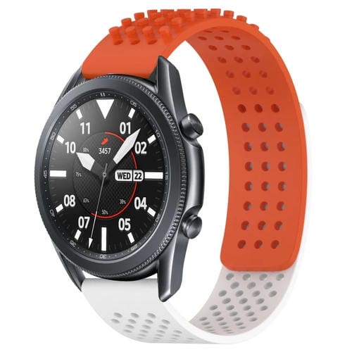 Correa de Reloj Silicona para Samsung Galaxy Watch3 45mm 22mm con Orificios y Puntos 3D Transpirables (Naranja + Blanco)