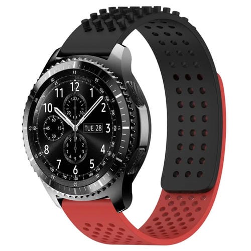 Correa de Reloj silicona Samsung Gear S3 Frontier con puntos 3D transpirables y orificios 22mm (Negro + Rojo)